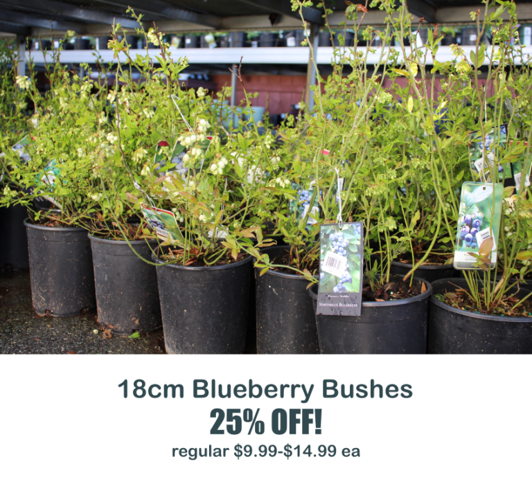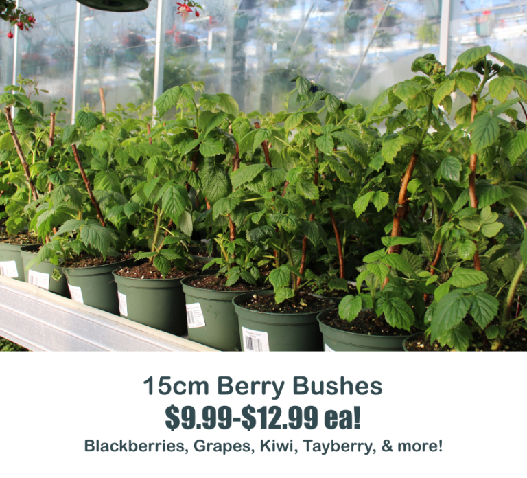 Specials WEEKLY SPECIALS April 20-25, 2026 Mason Bees (10 pack) $17.99 ea! regular $19.99 each 135cm $9.99 each! regular $14.99 each 180cm $5.99 each! regular $7.99 each 18cm Alberta Spruce $7.99 each! regular $9.99 each 10cm Frosty Fern $3.99 each! regular $4.99 each 10cm Kalanchoe $1.49 each! regular $2.99 each *E&OE Excepted*All Weekly Specials are subject to store availability.
